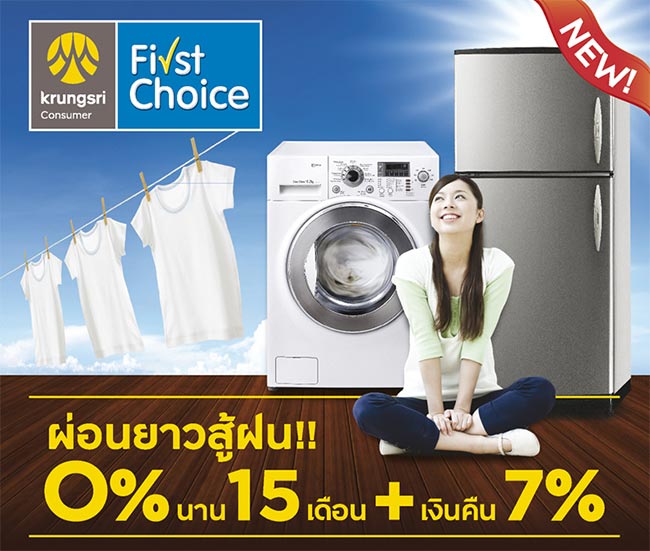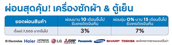 บัตรเฟิร์สช้อยส์ ให้คุณผ่อนยาวสู้ฝน! เครื่องซักผ้า & ตู้เย็น 0% นาน 15 เดือน พร้อมรับเครดิตเงินคืน 7%