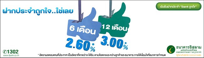 บัญชีเงินฝากประจำถูกใจ...ใช่เลยจากธนาคารอิสลาม ให้อัตราผลตอบแทนสูงสุดถึง 3.00% ต่อปี*