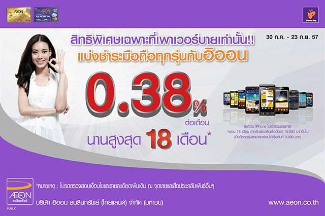 สิทธิพิเศษสำหรับลูกค้าอิออน เฉพาะที่เพาเวอร์บายเท่านั้น แบ่งชำระมือถือทุกรุ่น 0.38% ต่อเดือน นานสูงสุด 18 เดือน*