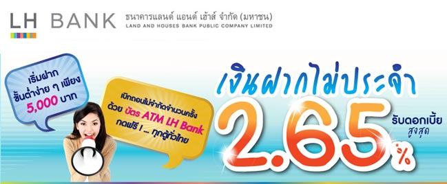 บัญชีเงินฝากไม่ประจำจากธนาคารแลนด์ แอนด์ เฮ้าส์ รับอัตราดอกเบี้ยสูงสุด 2.65% ต่อปี