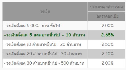 - วงเงินขั้นต่ำในการเปิดบัญชี 5,000 บาท และสูงสุดไม่เกิน 250 ล้านบาทสำหรับผู้ฝากประเภทอื่น