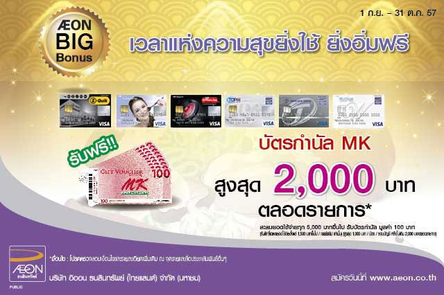 AEON Big Bonus รับฟรี! บัตรกำนัล MK สูงสุด 2,000 บาท