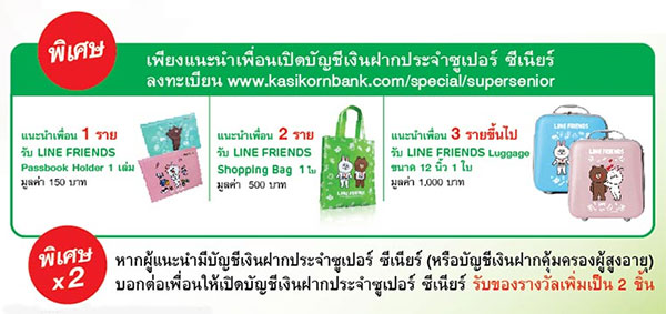 แนะนำเพื่อนเปิดบัญชีเงินฝากประจำซูเปอร์ ซีเนียร์ กับธนาคารกสิกรไทย รับฟรี ของสมนาคุณพิเศษ