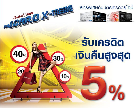 สิทธิพิเศษจากบัตรเครดิตยูโอบี ร่วมกับ Central และ ZEN ให้คุณรับเครดิตเงินคืนสูงสุด 5 เท่า*