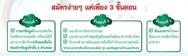 - ธนาคารจะจัดส่งของรางวัลให้กับผู้สมัคร ทางไปรษณีย์ ภายใน 60 วัน หลังจากที่ลูกค้าปฎิบัติได้ตามข้อกำหนดและเงื่อนไขรายการส่งเสริมการขายนี้