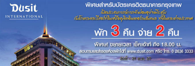พิเศษ!!! ใช้คะแนนสะสมจากบัตรเครดิตธนาคารกรุงเทพ (Thank you Rewards) 6,700 คะแนน (จากปกติ 10,000 คะแนน) แลกบัตรกำนัล ดุสิต อินเตอร์เนชั่นแนล มูลค่า 1,000 บาท (รหัสสินค้า 6216) สำหรับห้องพัก ห้องอาหาร หรือสปาที่ร่วมรายการ