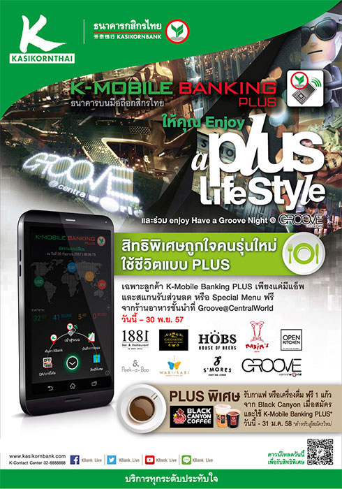 K-Mobile Banking PLUS เพียงแค่มี App และสแกนรับส่วนลด หรือ Special Menu ฟรีจากร้านอาหารชั้นนำที่ Groove@Central World