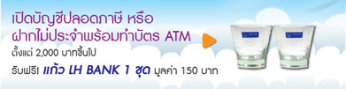 ตั้งแต่ 2,000 บาทขึ้นไป รับฟรี!แก้ว LH BANK 1 ชุด มูลค่า 150 บาท