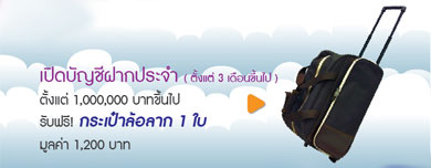 งแต่ 1,000,000 บาทขึ้นไป รับฟรี! กระเป๋าล้อลาก 1 ใบ มูลค่า 1,200 บาท