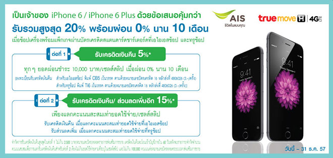 โปรโมชั่น แบ่งชำระค่าเครื่อง iPhone 6 ดอกเบี้ย 0% นาน 10 เดือน