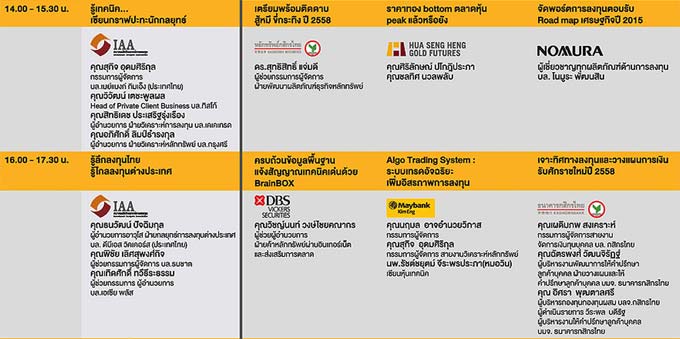 ช่วงบ่าย ยกขบวนนักวิเคราะห์ชั้นนำ มาเปิดมุมมอง แนะจับจังหวะลงทุนพิชิตหุ้นปี 58