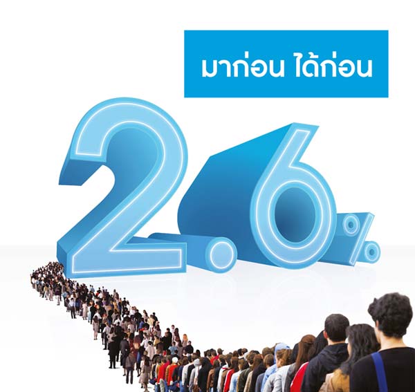 เงินฝากประจำดอกเบี้ยสูงจากกรุงไทย มาก่อน ได้ก่อน...ดอกเบี้ยสูง 2.6% ต่อปี