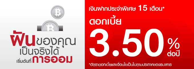 บัญชีเงินฝากประจำพิเศษ 15 เดือน ดอกเบี้ย 3.50% ต่อปี จะทำให้ฝันของคุณเป็นจริงได้...ด้วยการออม