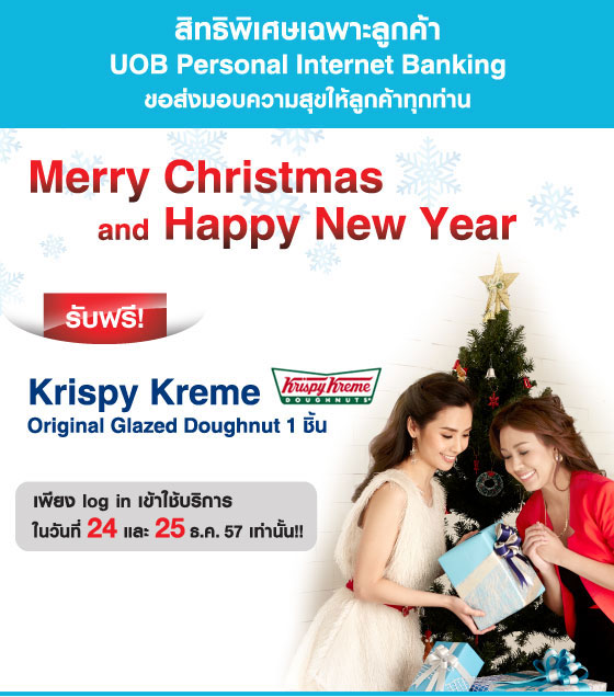 รับฟรี! Krispy Kreme Original Glazed Doughnut 1 ชิ้น เพียง Log in เข้าใช้บริการ UOB Personal Internet Banking 24 และ 25 ธ.ค.57 เท่านั้น