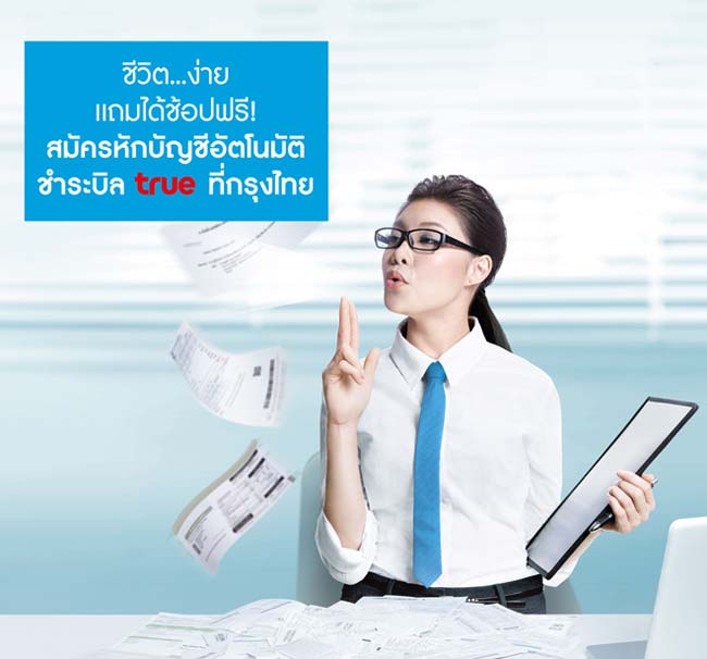 ชีวิต...ง่าย แถมได้ช้อปฟรี! เมื่อสมัครหักบัญชีอัตโนมัติชำระบิล true ที่กรุงไทย