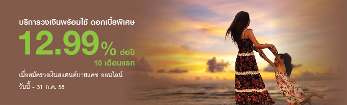 บริการวงเงินพร้อมใช้ ดอกเบี้ยพิเศษ 12.99% ต่อปี 10 เดือนแรก ที่ สแตนดาร์ดชาร์เตอร์ด ไทย