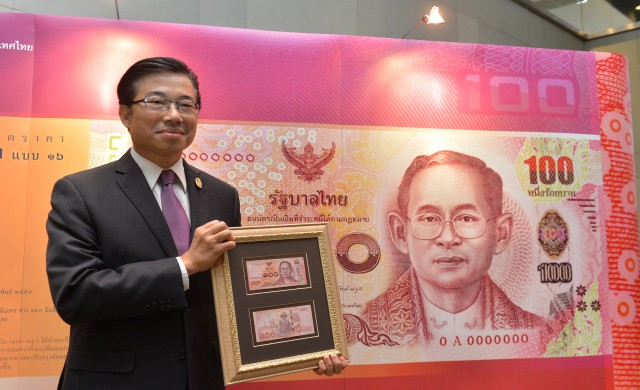 นายไพบูลย์ กิตติศรีกังวาน รองผู้ว่าการ ด้านบริหาร ธนาคารแห่งประเทศไทย (ธปท.) แถลงว่า ธปท. จะนำธนบัตรชนิดราคา 100 บาท แบบใหม่ ออกใช้ในวันที่ 26 กุมภาพันธ์ 2558 โดยธนบัตรชนิดราคานี้ มุ่งเฉลิมพระเกียรติสมเด็จพระเจ้าตากสินมหาราช จึงออกแบบให้แสดงถึงพระราชกรณียกิจอันสำคัญของพระองค์ นอกจากนี้ยังพัฒนารูปแบบให้มีความสวยงาม และมีเทคโนโลยีต่อต้านการปลอมแปลงที่ทันสมัยมากขึ้น เพื่อให้ประชาชน ภาคธุรกิจ สถาบันการเงิน รวมถึงผู้บกพร่องทางสายตา สามารถตรวจสอบได้โดยง่าย ทั้งด้วยตนเองและด้วยเครื่องจักรนับคัดธนบัตร
