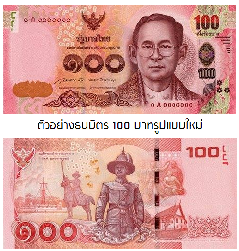 ทั้งนี้ ธนบัตรชนิดราคา 100 บาท แบบใหม่นี้ สามารถแลกได้ที่สาขาธนาคารพาณิชย์ทุกแห่ง ทั่วประเทศ และธนบัตรแบบที่ใช้ในปัจจุบันรวมทั้งแบบที่ใช้ก่อนหน้านี้ ยังคงชำระหนี้ได้ตามกฎหมาย