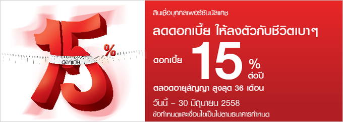 - สิทธิพิเศษสำหรับผู้สมัครและได้รับการอนุมัติสินเชื่อเพอร์ซันนัลแคชตั้งแต่วันนี้ - 30 มิถุนายน 2558 เท่านั้น