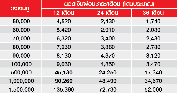 ลดดอกเบี้ยให้ลงตัวกับชีวิตเบาๆ ดอกเบี้ยพิเศษ 15% ต่อปี ตลอดอายุสัญญา สูงสุด 36 เดือน - ฟรี! ค่าธรรมเนียมการดำเนินการสินเชื่อ และค่าอากรแสตมป์