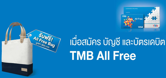 เปิดบัญชี TMB All Free วันนี้ รับฟรีกระเป๋า All Free ไปเลย วันนี้ - 30 มิถุนายน 2558 ที่ TMB ทุกสาขา