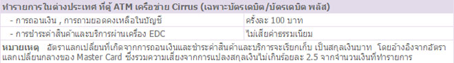 - ถอนเงินที่ตู้ ATM ทั่วโลก ที่มีเครื่องหมาย Cirrus 200,000 บาท/วัน