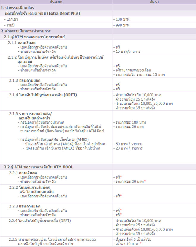 - บัตรเอ็กซ์ตร้า เดบิต พลัส (บัตรขาว)