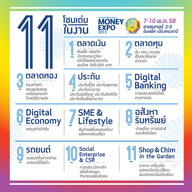 • มหกรรมการเงิน กรุงเทพฯ ครั้งที่ 15 (Money Expo 2015) 7-10 พ.ค. 58