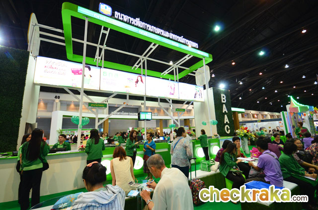ธนาคารกสิกรไทยมีการจัดรูปแบบบูธด้วยการนำสีเขียวคือสีประจำธนาคารมาโชว์ในงานครั้งนี้