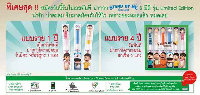 ธ.กสิกรไทย ขยายเวลาการสมัคร SMS ขยันบอก พร้อมรับทันที!! ปากกา Stand By ME 3 มิติ