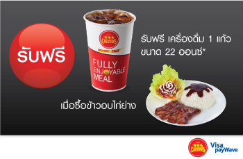 เมื่อซื้อข้าวอบไก่ย่าง รับฟรีทันทีเครื่องดื่ม 1 แก้ว ขนาด 22 ออนซ์
