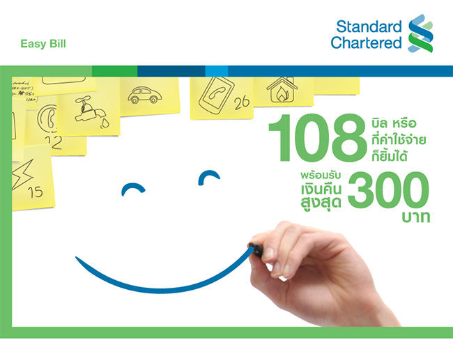 สมัคร Easy Bill ผ่านบัตรฯ สแตนดาร์ดชาร์เตอร์ด รับเงินคืนสูงสุด 300 บาท