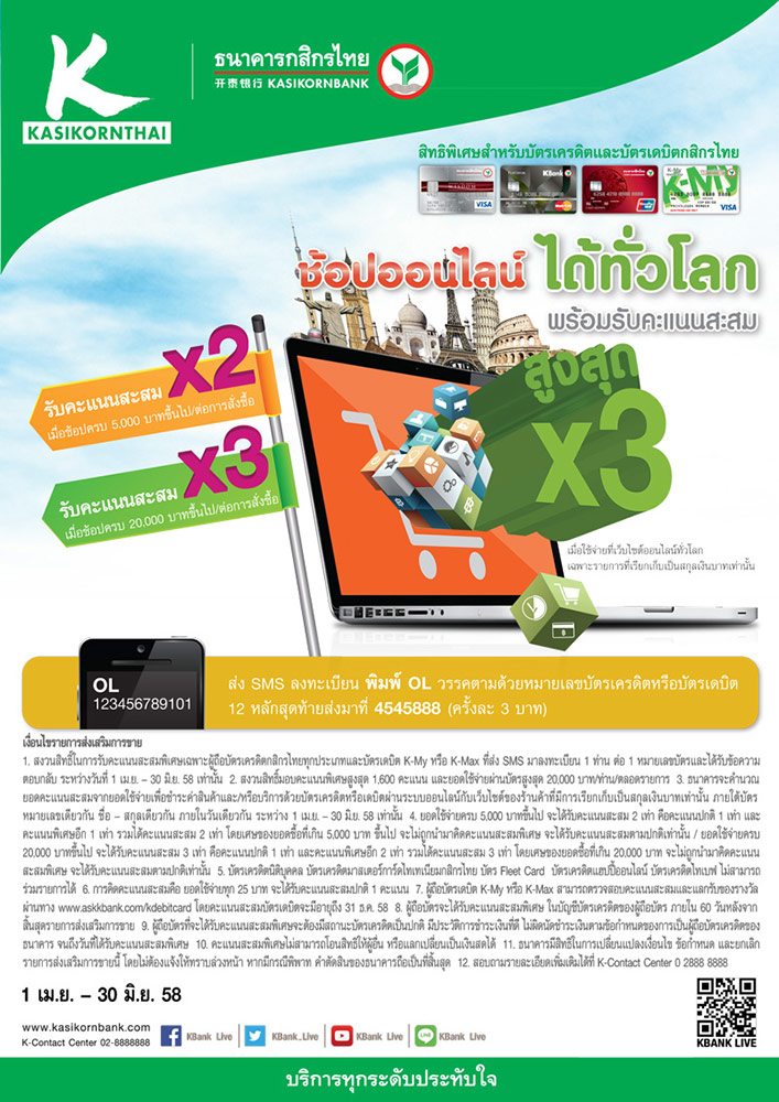 สิทธิพิเศษ! ช้อปออนไลน์ได้ทั่วโลก กับบัตรเครดิตและเดบิตกสิกรไทย พร้อมรับคะแนนสะสมสูงสุด X3