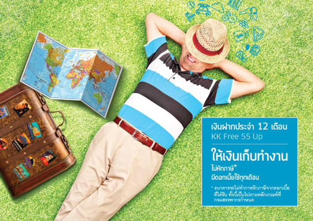เงินฝากประจำ 12 เดือน KK Free 55 Up ... ให้เงินเก็บทำงาน มีดอกเบี้ยใช้ทุกเดือน สูงสุด 2.30% ต่อปี