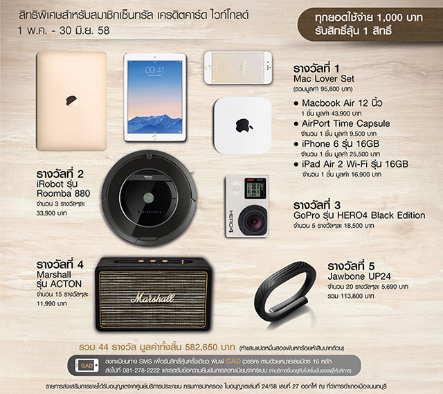 ลุ้นเป็นเจ้าของ gadgets แห่งปี 2015 สิทธิพิเศษจากบัตรเครดิตเซ็นทรัล เครดิตคาร์ด ไวท์โกลด์