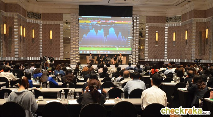 และได้รับเกียรติจาก ศ.ดร.พรายพล คุ้มทรัพย์ ผู้ช่วยรัฐมนตรีกระทรวงพลังงาน/สมาชิกสภาปฏิรูปแห่งชาติ, นายกวี ชูกิจเกษม รองกรรมการผู้จัดการ บริษัทหลักทรัพย์กสิกรไทย จำกัด (มหาชน), นายกอบสิทธิ์ ศิลปชัย ผู้บริหารงานวิจัยเศรษฐกิจและตลาดทุน ธ.กสิกรไทย และนางสาววิภาวี ภูดิสานนท์ ผู้บริหารงานขายผลิตภัณฑ์ทางการเงิน ธ.กสิกรไทย ร่วมเสวนาในหัวข้อ "จับทิศทางความเคลื่อนไหวในประเทศ แนวโน้มอัตราแลกเปลี่ยน และหุ้นเด่น" โดยมี คุณสินีนาถ สวัสดิ์พูน พิธีกร/ผู้ประกาศข่าว Money Channel เป็นผู้ดำเนินรายการ