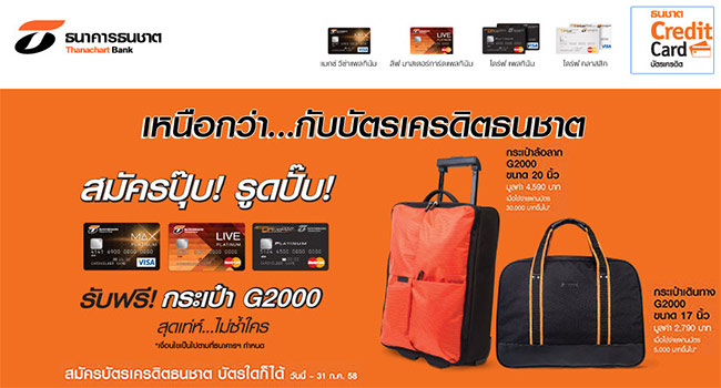 สมัครปุ๊บ! รูดปั๊บ! รับฟรี! กระเป๋า G 2000 เลือกสมัครบัตรเครดิตธนชาตบัตรใดก็ได้