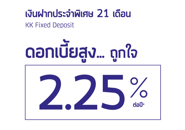 เงินฝากประจำพิเศษ 21 เดือน ดอกเบี้ยสูง... ถูกใจ 2.25% ต่อปี จากธ.เกียรตินาคิน