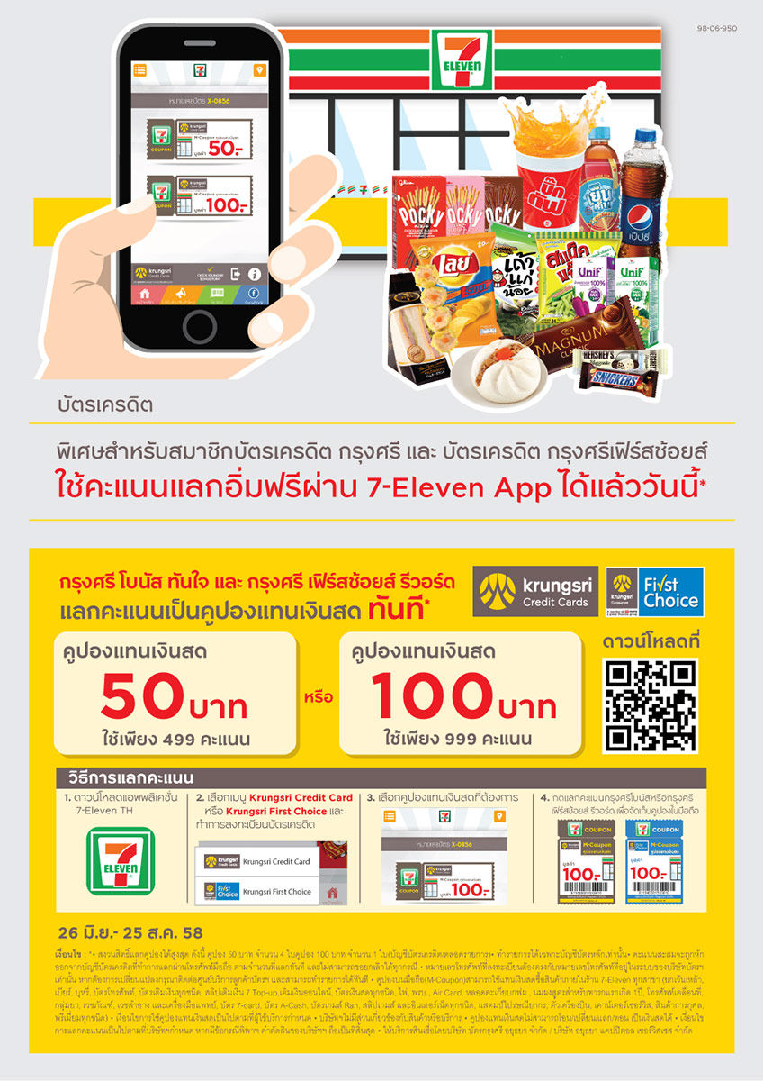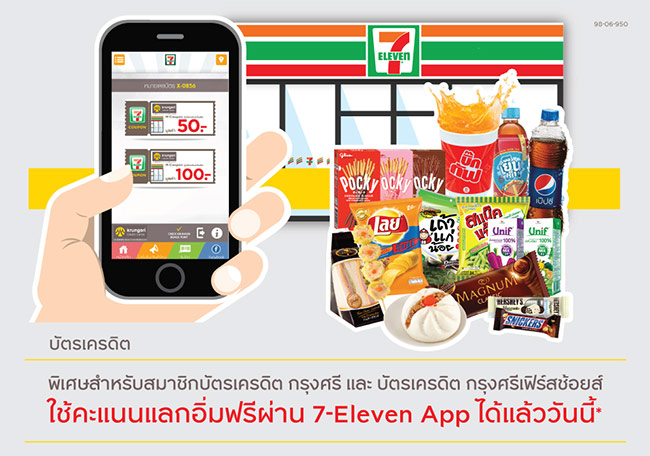พิเศษสำหรับสมาชิกบัตรเครดิต กรุงศรี และ บัตรเครดิต กรุงศรีเฟิร์สช้อยส์ ใช้คะแนนแลกอิ่มฟรีผ่าน 7-Eleven App ได้แล้ววันนี้