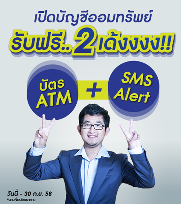 โปรโมชั่นพิเศษ! สำหรับลูกค้าใหม่ประเภทบุคคลธรรมดา ที่ยังไม่เคยมีบัญชีกับทางธนาคารพร้อมสมัครใช้บริการบัตร ATM และบริการแจ้งเตือนอัตโนมัติ SMS Alert รับฟรี...