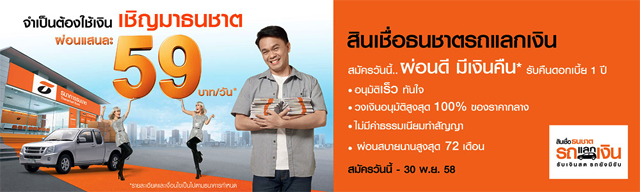สินเชื่อธนชาตรถแลกเงิน ผ่อนแสนละ 59 บาท/วัน สมัครวันนี้ ... ผ่อนดี มีเงินคืน