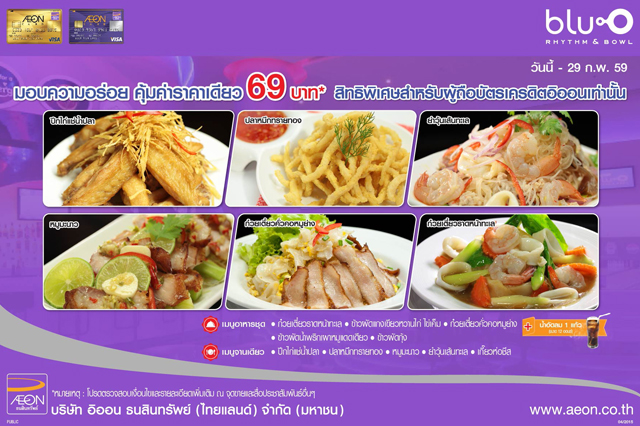 บัตรฯ อิออน มอบความอร่อย คุ้มค่าราคาเดียว 69 บาท สิทธิพิเศษที่ร้าน bluo