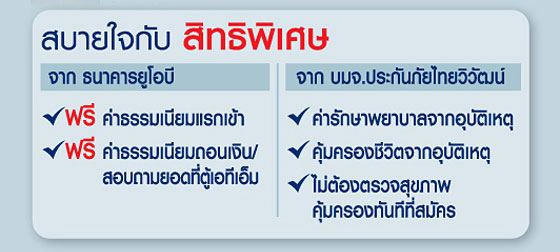 บัตรเดบิตธนาคารยูโอบีถอนตู้ไหน ก็ไม่มีค่าธรรมเนียม พร้อมความอุ่นใจ ... กับการคุ้มครองชีวิตจากอุบัติเหตุด้วย