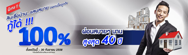 พิเศษ!! สินเชื่อบ้าน... แสนสบาย ดอกเบี้ยถูกใจ อนุมัติวงเงินสูงสุด 100%* พร้อมระยะเวลาผ่อนสบายๆ นานสูงสุด 40 ปี** จากธนาคารแลนด์ แอนด์ เฮ้าส์