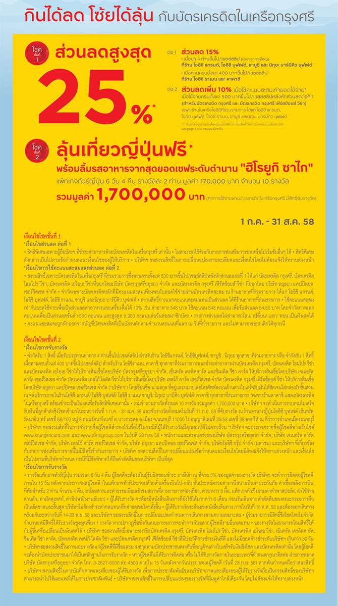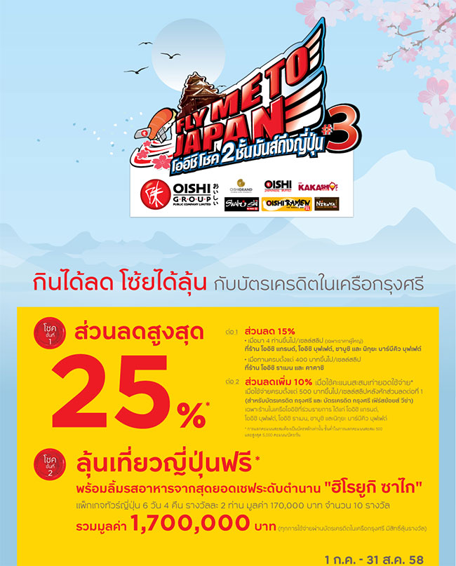 Oishi Fly Me to Japan กินได้ลด โซ้ยได้ลุ้น กับบัตรเครดิตในเครือกรุงศรี