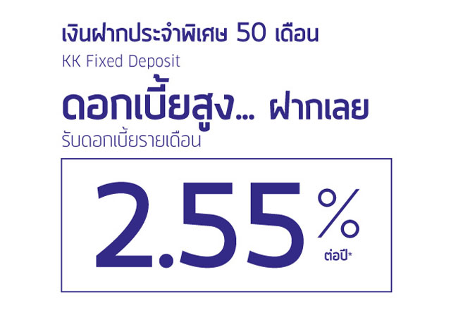เงินฝากประจำพิเศษ 50 เดือน ดอกเบี้ยสูง ... ฝากเลย รับดอกเบี้ยรายเดือน 2.55% ต่อปี จาก ธ.เกียรตินาคิน
