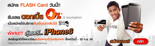 ต่อที่ 2 : ลุ้นรับ iPhone6 เพียงลงทะเบียนสมัครใช้บัตรสินเชื่อบุคคลธนชาต FLASH Card และบริการสินเชื่อเบิกเพิ่มได้ (Cash on Call) ผ่านเว็บไซต์ธนาคาร - 30 ก.ย. 2558 นี้