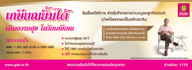 เติมความสุข ในวัยเกษียณ กับสินเชื่อสวัสดิการ สำหรับข้าราชการบำนาญและลูกจ้างประจำ จาก ธ.ออมสิน