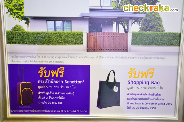- Shopping Bag มูลค่า 259 บาท จำนวน 1 ใบ สำหรับลูกค้าที่สมัครสินเชื่อบ้านและยื่นเอกสารครบถ้วนภายในงาน