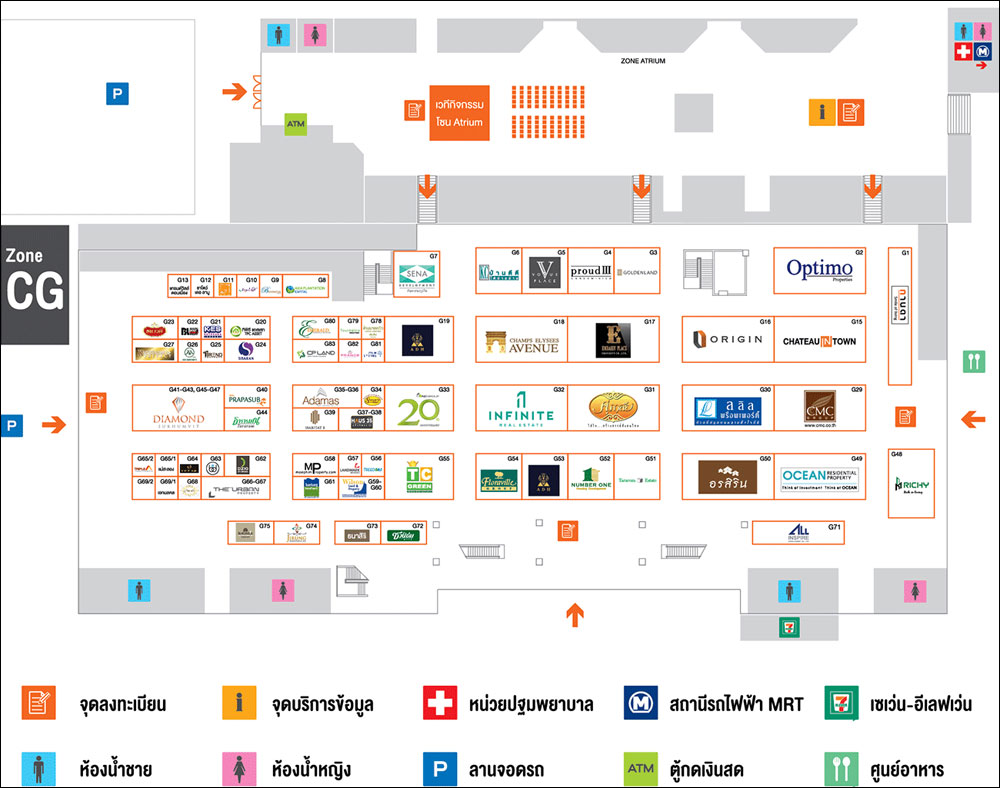 งานอภิมหกรรมบ้าน - คอนโดฯ และสินเชื่อแห่งปี มีบริการให้คำปรึกษา สำหรับลูกค้ามือใหม่ที่ต้องการซื้อบ้าน กู้ยังไงให้ผ่าน? วิเคราะห์กลยุทธ์ลงทุนอสังหาฯ เจาะ 10 ทำเลทอง ปี 2559 และแผนที่โครงข่ายระบบรถไฟฟ้ากรุงเทพฯ และปริมณฑล 10 สาย พร้อมรับของพรีเมียมเมื่อเยี่ยมชมบูธ และรับโปรโมชั่นพิเศษ เมื่อจองซื้อบ้าน - คอนโดฯ ภายในงาน ท่านที่สนใจโปรโมชั่นต่างๆ สามารถเข้าชมงานตามแผนผังบูธของแต่ละโครงการและสถาบันการเงินที่มาร่วมงานตามโซนด้านล่างนี้ได้เลยค่ะ